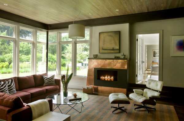 Дизайн интерьера гостиной в колониальном стиле. Медная отделка камина