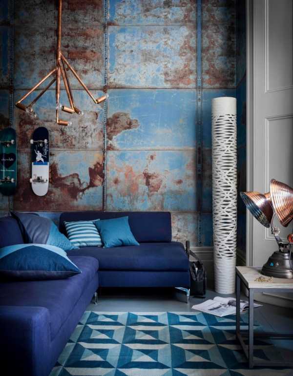 - С контрастными холодными оттенками (серо-синяя гамма). Это яркий и смелый интерьер.