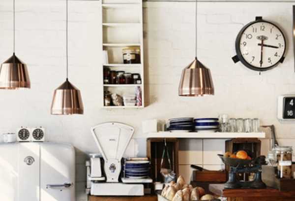 Кованная лампа медной окраски поможет совершить прямо-таки временной скачок в другое столетие, чем и пользуются дизайнеры, составляя кросс-временной интерьер. В любом случае, есть сотни способов обыграть обстановку по-новому с помощью медного светильника, что следует помнить, если хочется придать кухне атмосферу старины.