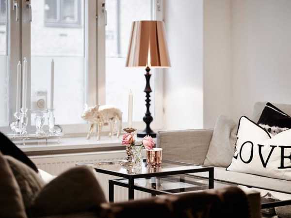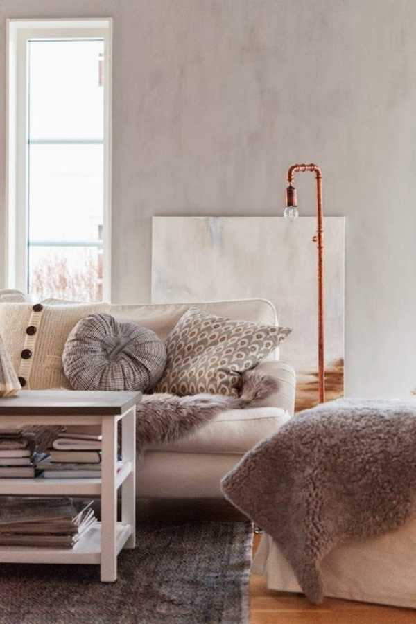 Необычный торшер из меди. Гостиная в скандинавском стиле