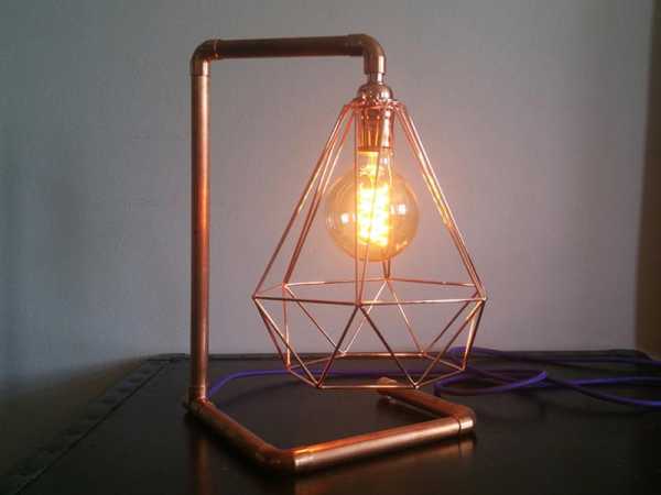 Необычная я настольная лампа в стиле лофтМедные аксессуары в интерьере привлекают внимание. Поэтому, использовать этот металл нужно очень дозировано. Если это отделка, то пусть это будет каминный портал, часть стены или отдельная колонна. Разбавить отделку можно осветительным прибором или каким-либо аксессуаром из меди. Однако, переусердствовать с этим не стоит, дабы не превратить стильное пространство в эталон безвкусицы.