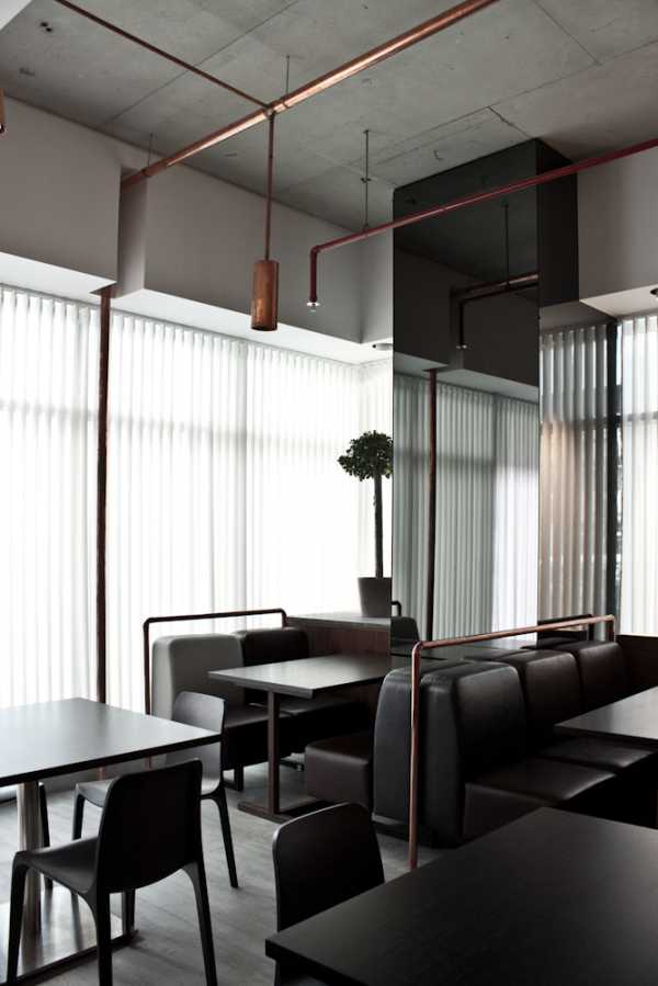 Дизайн интерьера кафе в современном минималистичном лофте с необычным медным декором и освещениемПоследнее время, в дизайне интерьеров и архитектуре все чаще используются осветительные приборы из меди. Дизайнеры и производители быстро подхватили волну всеобщей любви к этому металлу и начали создавать очень интересные модели в разных стилях. Особый любитель этого благородного металла — дизайнер Том Диксон. Его работы явное тому подтверждение.