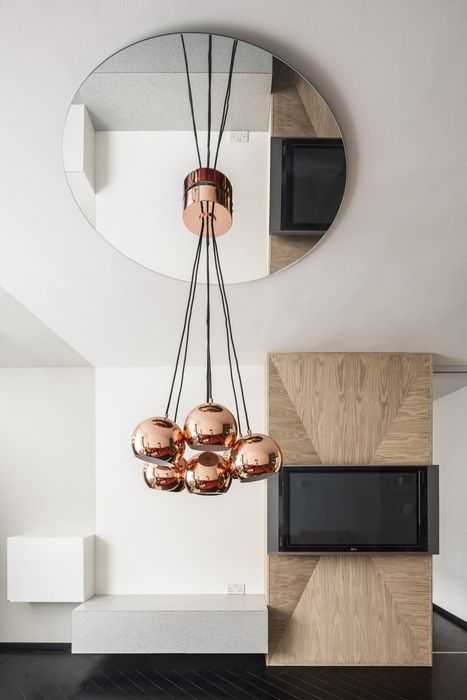 Светильники Tom Dixon в интерьере и медные элементы мебели