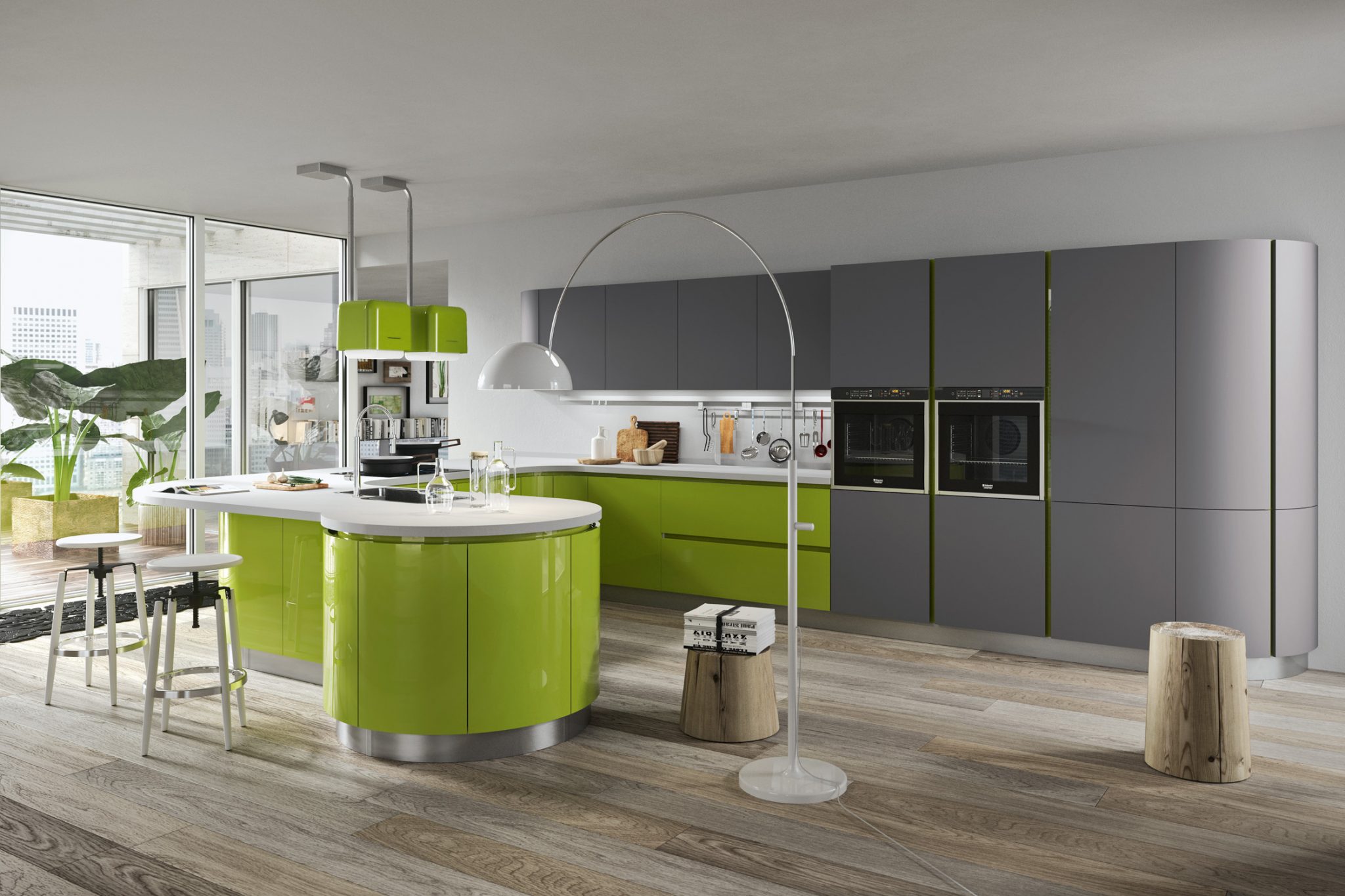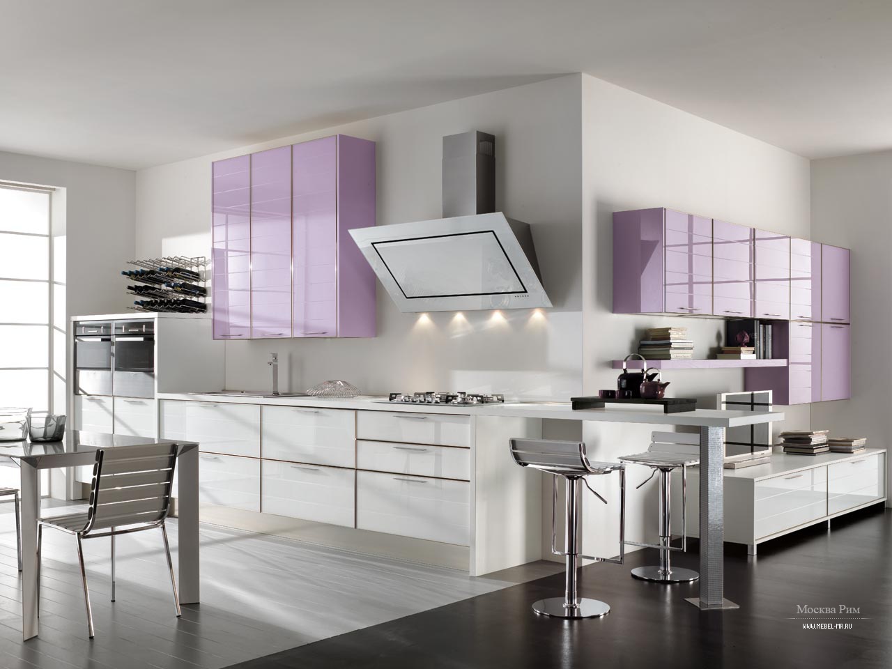 Сиреневые, зеленые, желтые, оранжевые кухни — для предпочитающих яркие краски в своем интерьере.