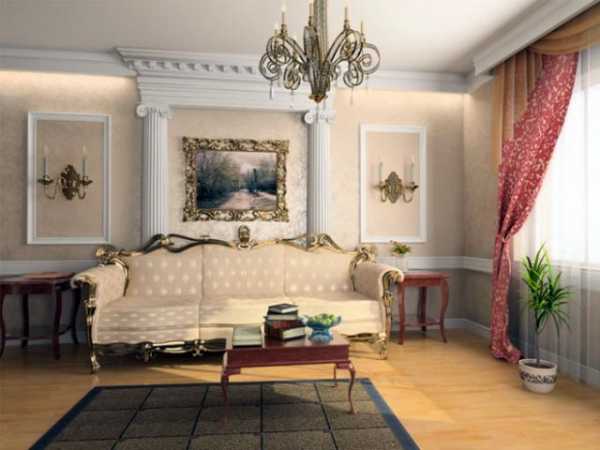 Классический стиль подчеркивают колоннами или орнаментной золотой лентой.