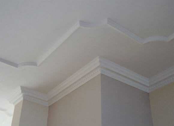 Пенопласт, в отличие от дерева, влагоустойчивый и легкий. Монтировать молдинг из пенопласта просто даже на неровных поверхностях, поскольку он прекрасно гнется. Но, к сожалению, есть существенный минус, и это — хрупкость. Пенопласт сложно красить и шпаклевать. Ухаживая за таким молдингом, подбирайте щадящие моющие средства, лаки и краски.