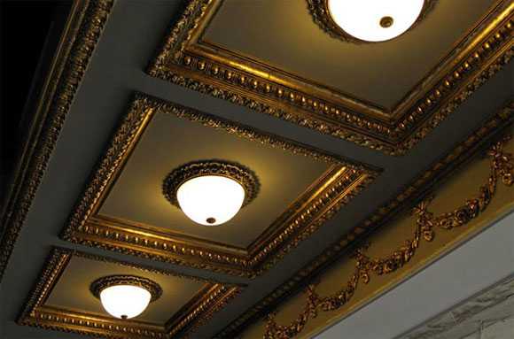 - Для украшения помещения используют лепнину, это позволит сделать узоры на потолке, воплощая при этом фантазию.