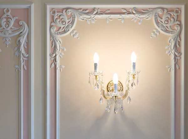 Декор стен гипсовыми молдингами обладает повышенной гигроскопичностью, что делает невозможным его использование в помещениях с повышенной влажностью.
