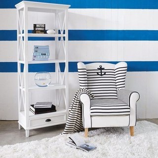 Бело-синяя горизонтальная полоска пришла в мир моды еще в ХIX столетии и по сей день символизирует морской стиль, придает интерьеру свежесть и легкость. Главное — не переусердствовать: вполне достаточно пары аксессуаров, например, ковра или пледа. Один крупный акцентный предмет, как кресло на фото, тоже подойдет.