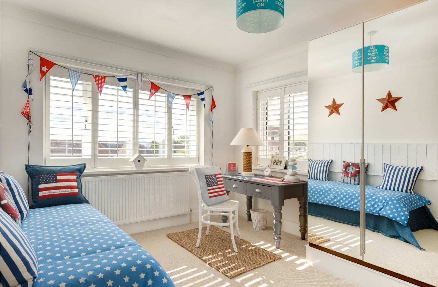 Дизайн комнаты в морском стиле должны дополнять и особые детали, придающие изысканность.