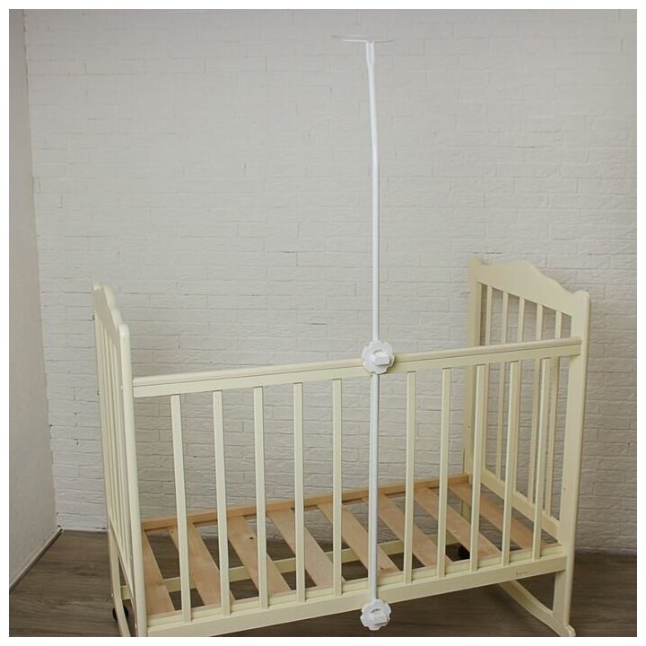 Мобильный навес с креплением подставки к кроватке можно изготовить из деревянного бруска, металлической или пластиковой трубы. Закрепить их к бортикам кроватки можно с помощью хомутов.