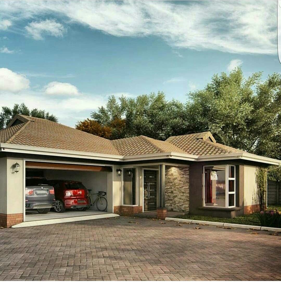 Одноэтажный дом, соединенный с гаражом крышей, имеет ряд достоинств: