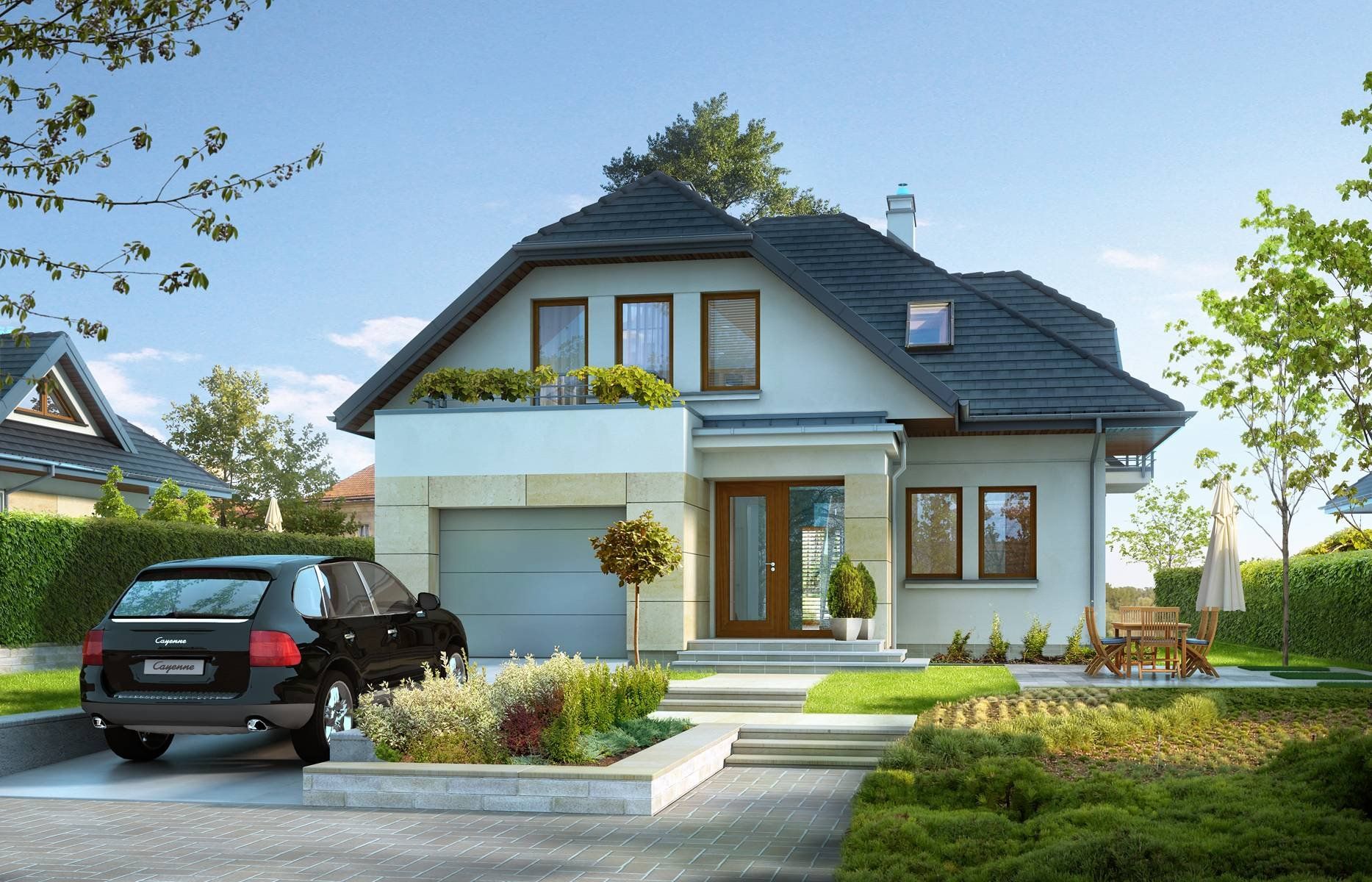 В целом именно этот вариант является самым удобным и выгодным, так как не требуется кладка сверхмощного фундамента, реализовать такой проект проще, чем построить 2-ух или 3-ех этажный дом с гаражом.