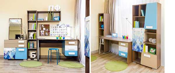 Организация рабочего пространства для двоих детейУгловые модели имеют маленькую вместимость и используются в основном для хранения тетрадей, карандашей, авторучек, альбомов и разнообразных маленьких сувенирчиков.