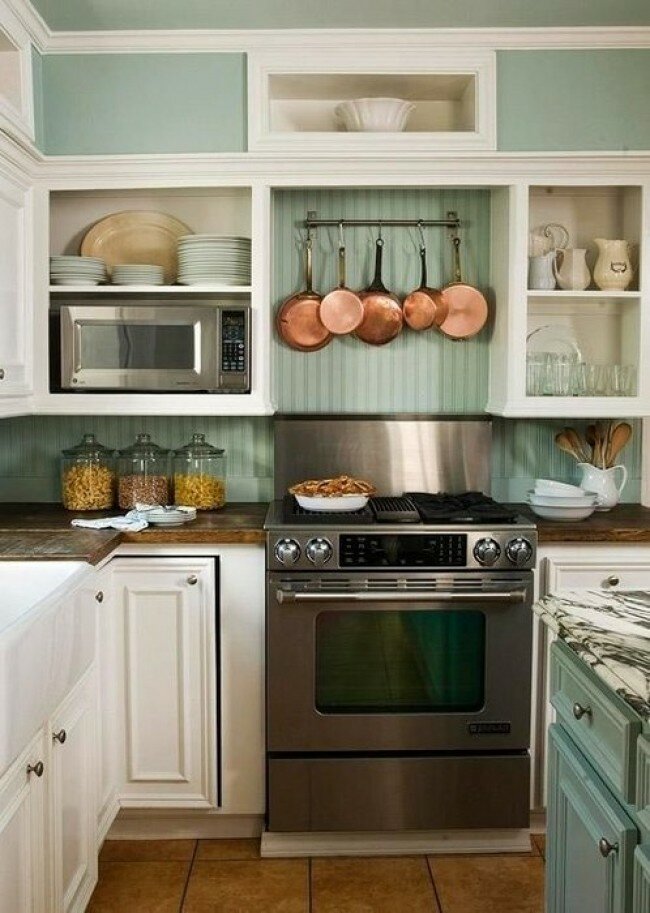 Поиск удачного места для микроволновой печи актуален для компактных кухонь, где нужно экономить буквально каждый квадратный сантиметр. Обратите внимание на следующие идеи размещения СВЧ, позволяющие не занимать полезную площадь кухонных столов: