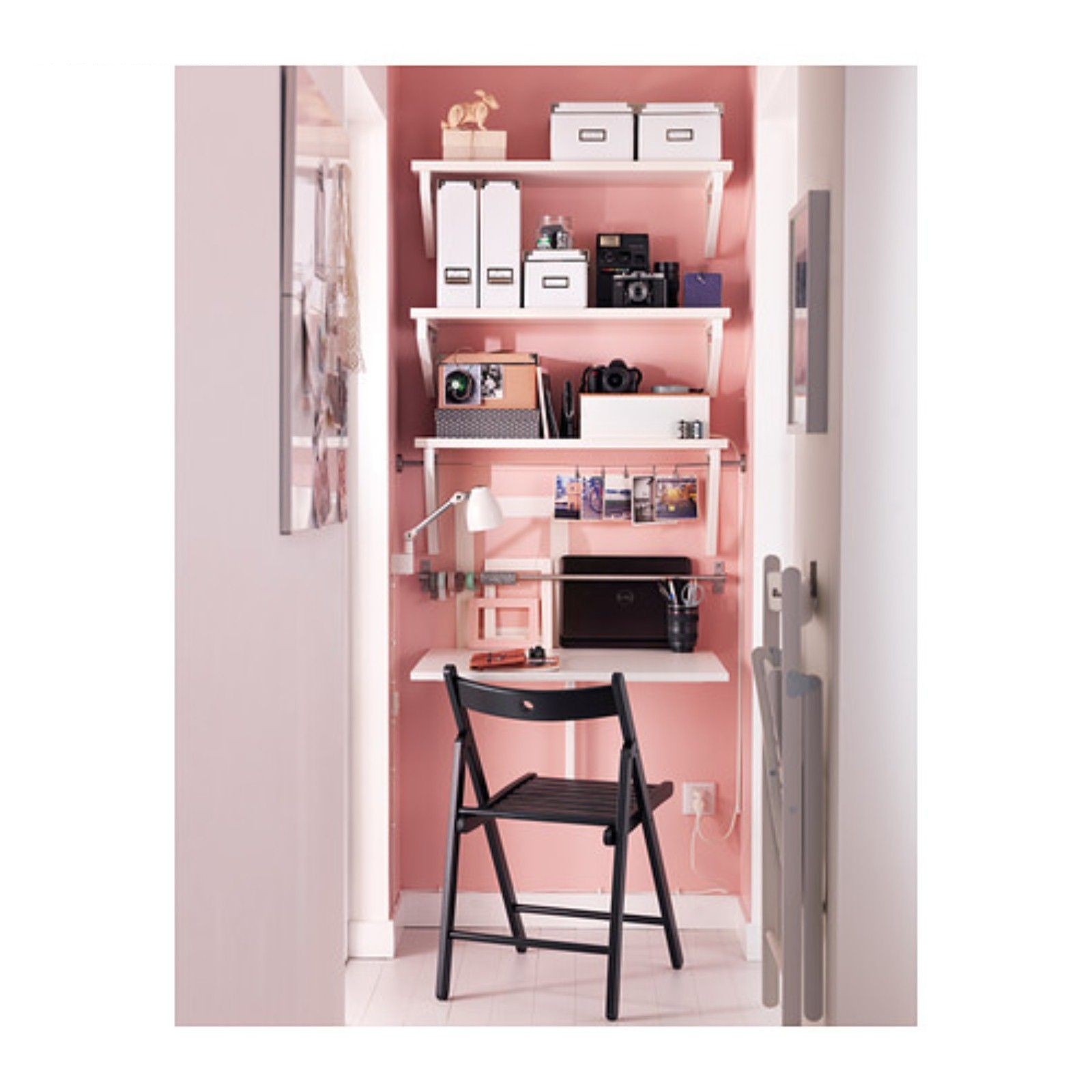 Подобно тому, как показано ниже, шкаф ИВАР и выпадающий стол NORBO. Вместо того, чтобы устанавливать стол на стену, он крепится к шкафу. Для этого вам не понадобятся двери IVAR.
