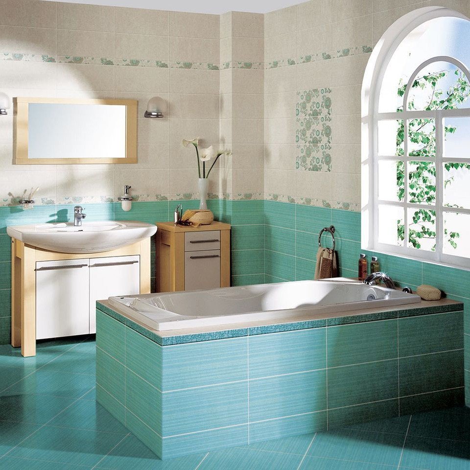 Коллекционная плитка представлена в светлом бежевом и лазурном цвете. Такой мотив придаст чувство спокойствия и легкости окружающей обстановке.