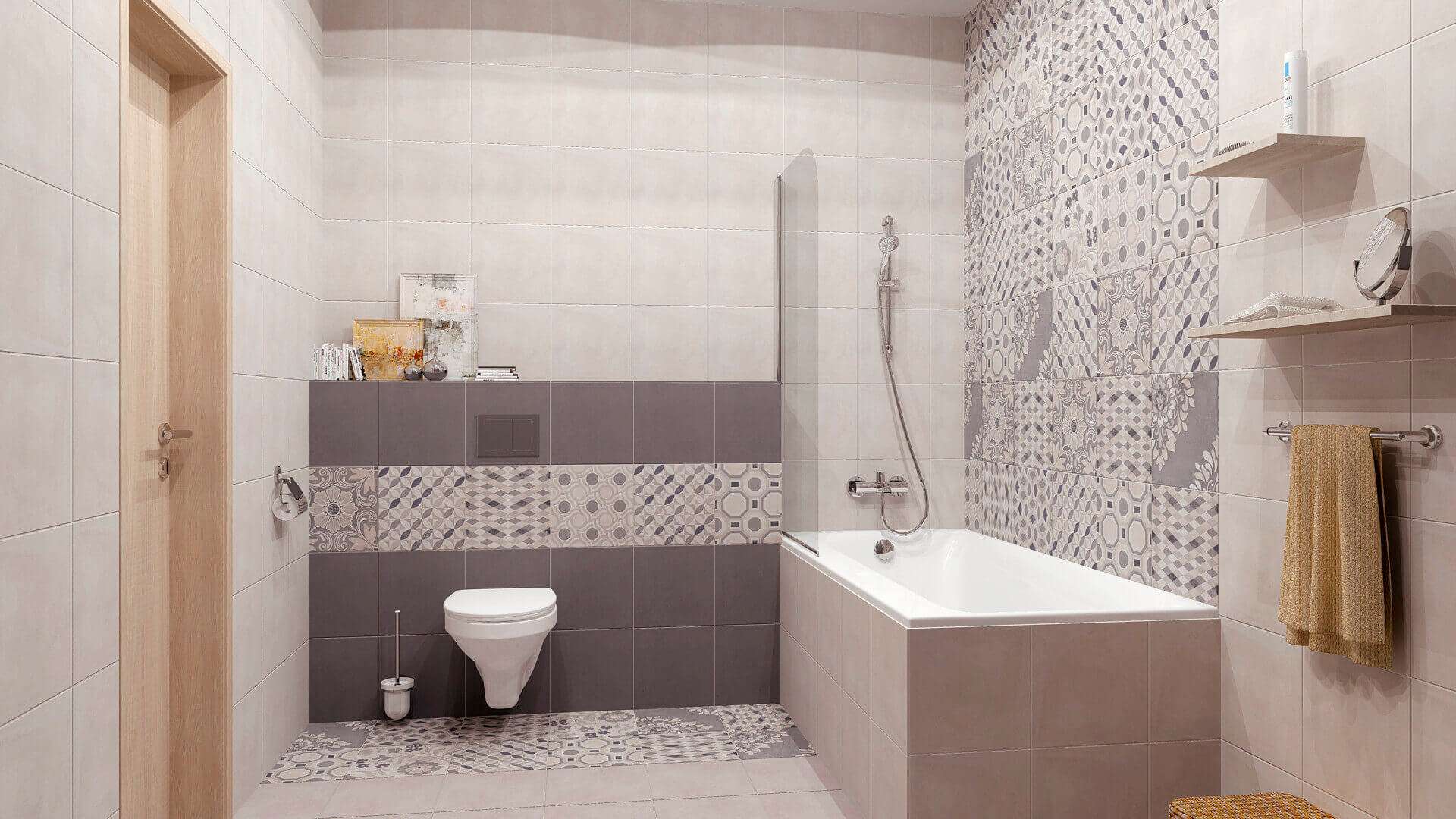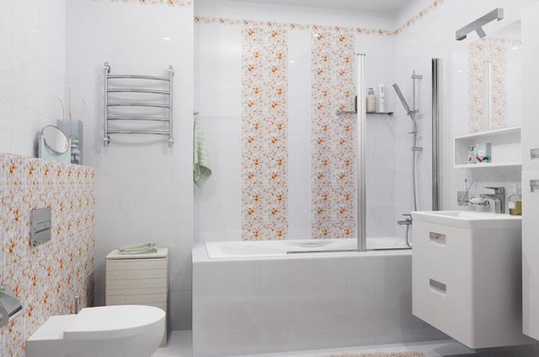 Гармония вкуса и роскоши воплощены в мозаику настенной керамики, а белый декор с цветочным принтом цвета оливы изящно подчеркивает уют и комфорт данного помещения.