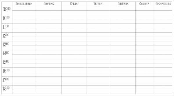 Шаблон «Время – дни недели». Удобен для наглядного планирования встреч и дел на неделю.