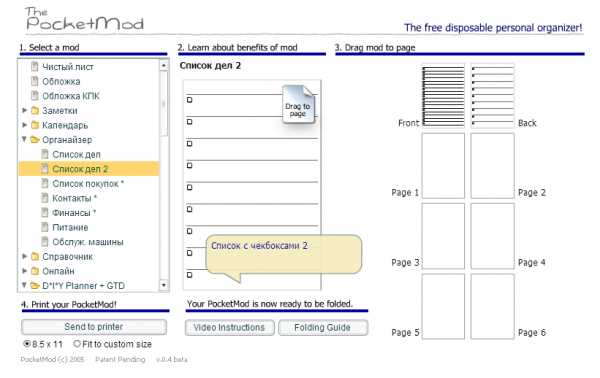 PocketMod — это множество шаблонов и конструктор. Вы можете сами выбрать, что вам нужно, распечатать и использовать в работе или учёбе. Возможностей у сервиса очень много: