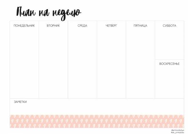 Распечатав данный ежедневник, вы сможете составить расписание на целую неделю вперед.