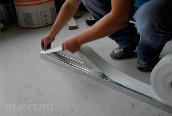 Все профили, непосредственно контактирующие с основной стеной, полом или потолком, обязательно проклеиваются демпфирующей лентой из вспененного полиэтилена