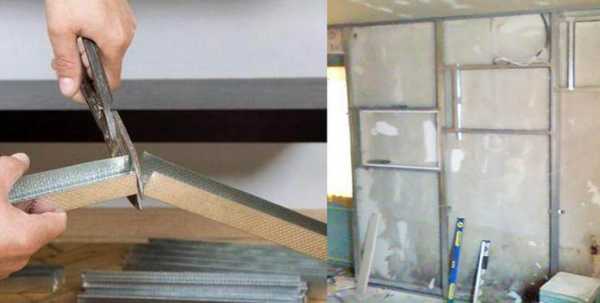 Для боковых колон, если они прямые, выполняется дублирование направляющих профилей в положении навстречу уже закреплённым на стене. Между ними вставляются перемычки фиксированной длины, которые определяют глубину выемки. Для наиболее мелких ниш вторую группу направляющих просто вкладывают в первую.