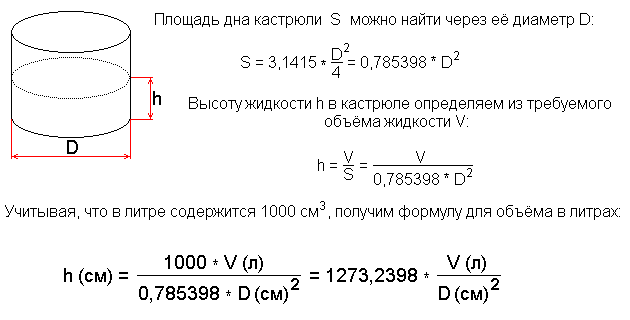 как посчитать объем кастрюли в литрах по размерам и диаметру