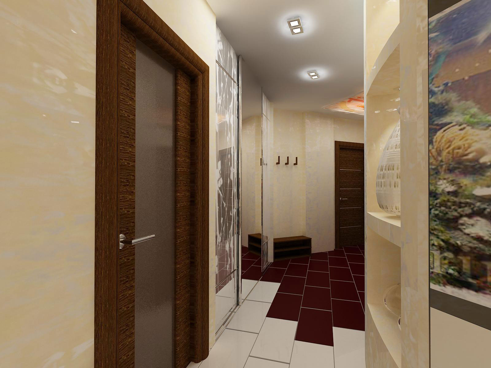 Обязательно нужно продумать освещение коридора такого плана. Он должен быть мягким, но хорошим. Располагать светильники необходимо не только на потолке, но и на стеновых поверхностях. Оригинальность и уют помещению может придать подсветка ниш из гипсокартона, оклеенных обоями.
