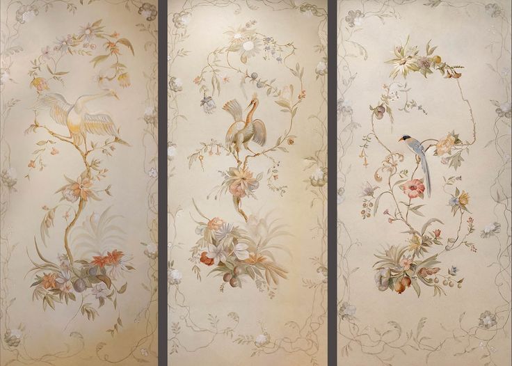 Выше представлено расписное шелковое панно середины восемнадцатого века – панель обоев в стиле шинуазри – через @nicolefabredesigns – Instagram
