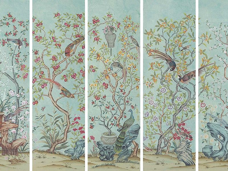 Давайте рассмотрим более доступные источники фотообоев и панно в стиле шинуазри в духе Грейси и Де Гурне.