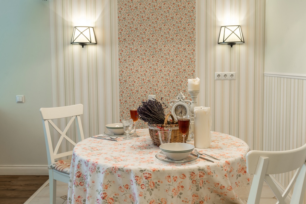 Если в интерьере кухни использовать мелкие изображения, комната визуально окажется больше. Действительно такое утверждение и в обратном направлении. То есть крупный рисунок будет уменьшать пространство.