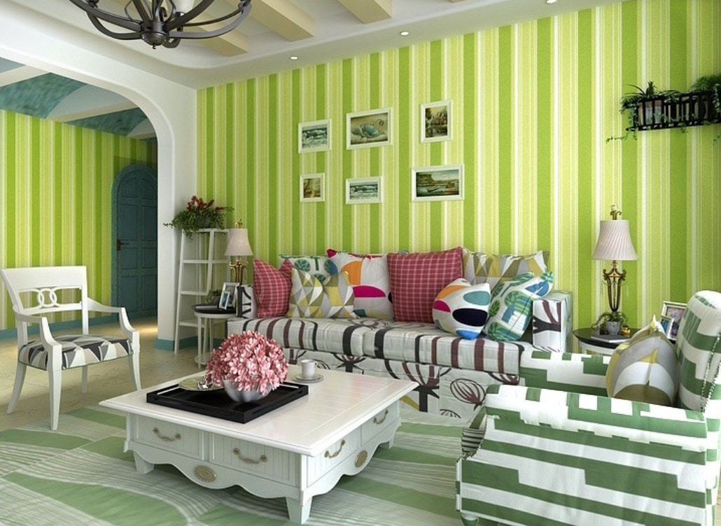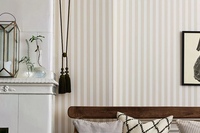 - Если мебель в интерьере имеет приоритетное значение, то обои в полоску с нейтральным оттенком способны смягчить ее влияние. Более того, отделка может сосредоточить на себе внимание, если сделать чередование разных оттенков и ширины полос. Более тонкие и яркие полоски привлекают больше внимания. Такую способность можно использовать, чтобы, например, замаскировать дверь. Однако сильно усердствовать с полосатостью не стоит, поскольку пройдет немного времени, а решение уже может надоесть.
