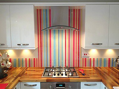 Домовладельцы, которые предпочитают плиточное покрытие обоям, могут декорировать свои ванные комнаты и кухни полосатой плиткой, используя плитки различных цветов, гармонично и контрастно сочетающиеся друг с другом и с кухонной мебелью.