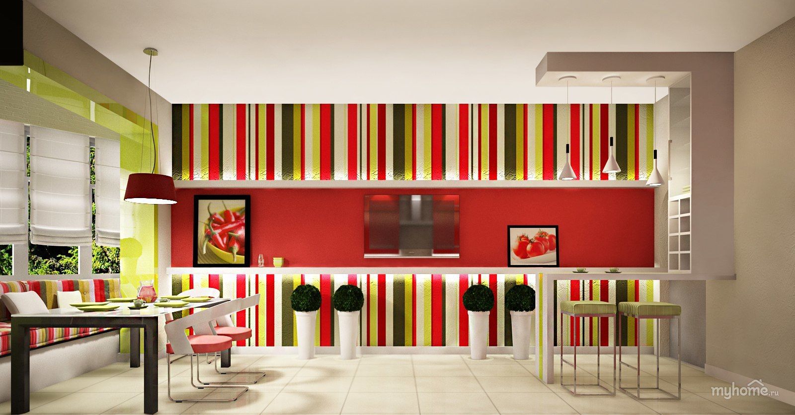 фото идеи для стен. Полосатые идеи для кухни Полосатые обои на кухне
