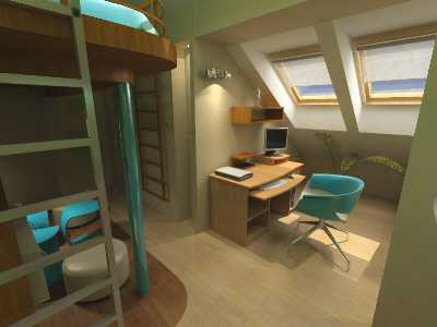 Если вы счастливый родитель сына или дочери подростка, то оборудование спальни на чердаке для чада – лучший подарок. Повзрослевшие дети высоко оценят желание родителей предоставить им свободу в виде собственной комнаты. Для этого, стены окрашивают в светлый тон, чтобы визуально расширить пространство. Мебель для подростковой спальни лучше приобретать в коричневых тонах. Такой дизайн, представленный на фото, наверняка, понравится будущему юному обитателю.