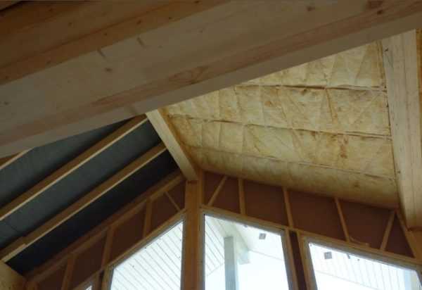 Установка утеплителя изнутри создаст комфорт в мансарде и зимой, и летом- Теплоизоляционный материал закладывается между стропилами, или специально установленными между ними стойками – тут уже все зависит от стропильной системы. Пароизоляция укладывается внахлёст, крепится степлером к деревянным конструкциям, и проклеиваются стыки полотен скотчем.
