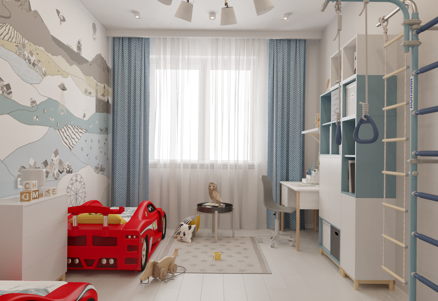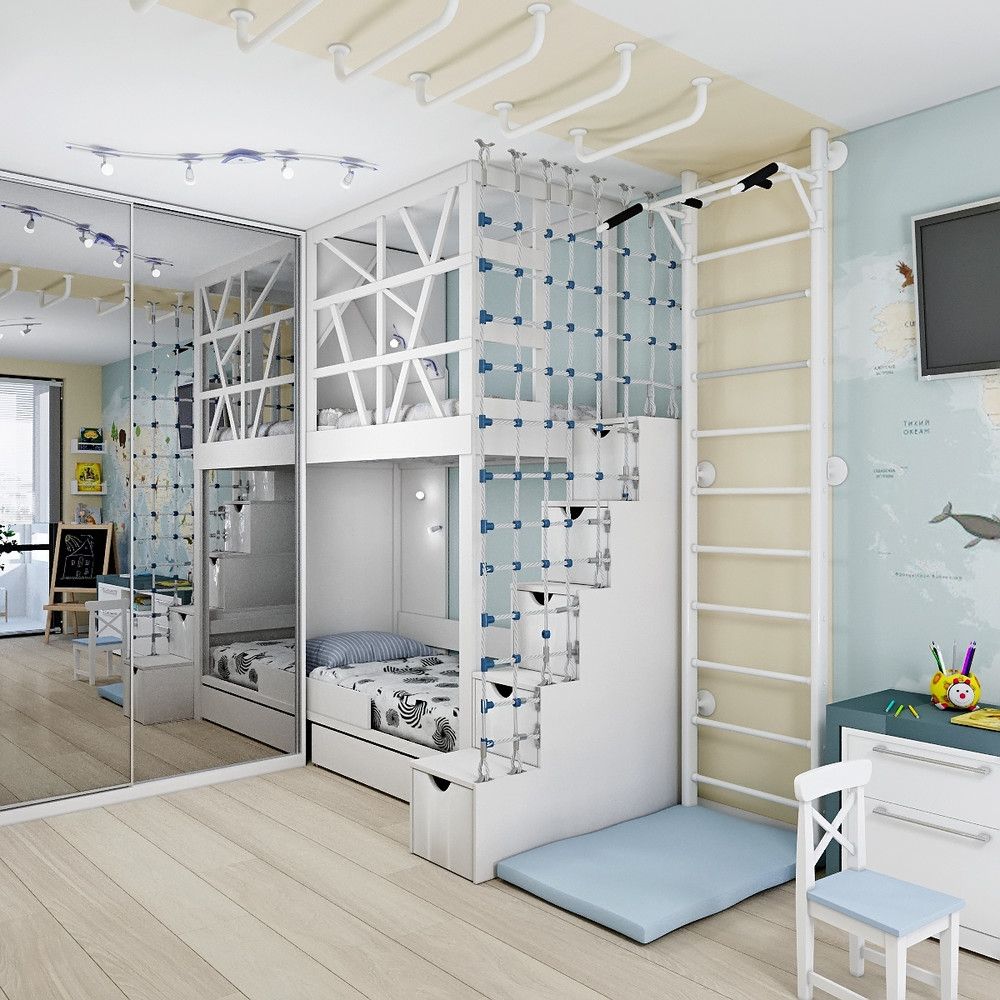 - Если в комнате уже есть ниша или ниша, именно в этом уютном уголке следует устроить спальное место для ребенка.Легкая занавеска — и ниша станет отдельной детской спальней. В некоторых квартирах в этих изначально спланированных нишах размещается не только двухъярусная кровать, но и небольшой письменный стол.