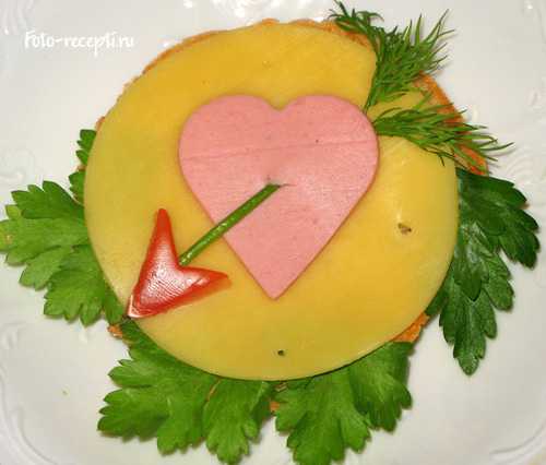 Бутерброды для детей «сердце» с маслом, сыром и колбасой