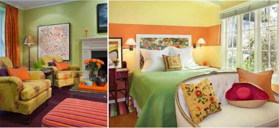 В оранжевых и зеленых тонах чаще всего оформляют детские комнаты. Так же эта комбинация часто встречается в цветовой гамме игрушек, картинок и супер героев. Они помогают в развитии и формировании взглядов.