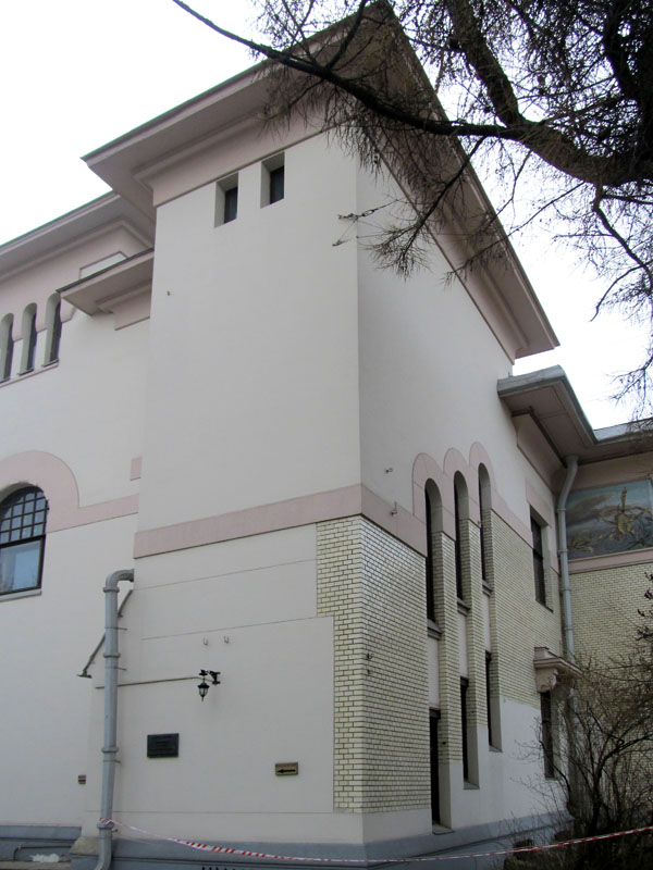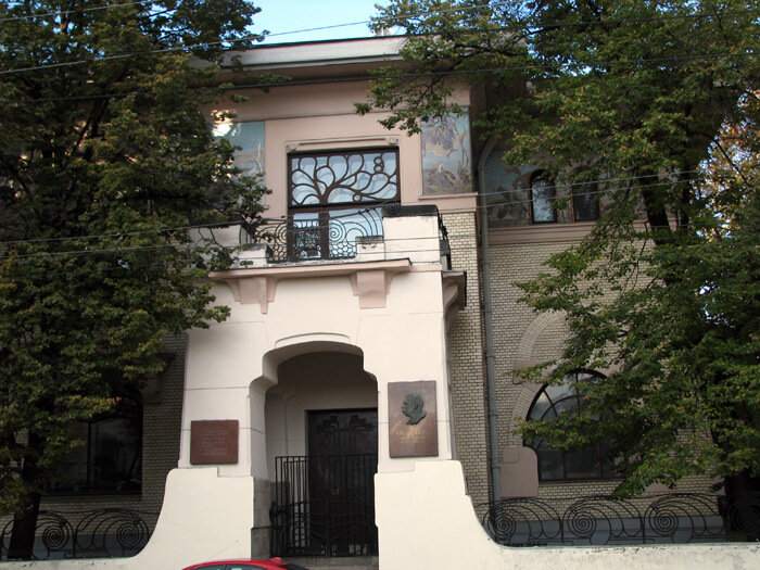 Дата создания: 1900г. — 1902г. Архитектор: Шехтель Ф.О. Особняк Рябушинского на Малой Никитской улице является классическим образцом особняка раннего модерна. В противовес «фасадной» архитектуре здесь торжествует кубический объем, подчеркнутый горизонталями сильно вынесенных вперед плит карниза и прихотливо асимметричными выступами стен, массивных крылец, балконов, всякий раз индивидуально неповторимых и потому утверждающих равноценность всех фасадов. Облицовка светлым глазурованным кирпичом и широкий мозаичный фриз с изображением ирисов, охватывающий поверху здание, выявляют эстетическую выразительность глади стен, прорезанных квадратами больших окон. Рационализм планировки внутренних помещений, группирующихся вокруг парадной лестницы, сочетается с иррациональностью изощренных и изысканных форм декора (парапет парадной лестницы, рельеф, украшающий камин, металлическая решетка в тимпане арки дверного проема столовой и его деревянное обрамление, железный каркас люстр и т. п.). Каждая комната благодаря отказу архитектора от анфиладного принципа расположения помещений обретает самостоятельность и обособленность; вместе с тем отчетливо выражено стремление к объединению внутреннего пространства, его свободной текучести. Все детали отделки интерьера, вплоть до дверных ручек, осветительной арматуры, мебели, тщательно продуманы и наделены эстетической ценностью, во всем видна забота о красоте и комфорте. Москва и Подмосковье. После 1917 года особняк Рябушинского перешёл во владения города и принадлежал попеременно Наркомату по иностранным делам, Государственному издательству, психоаналитическому институту, детскому саду. С 1931 года в особняке жил М. Горький. В наше время особняк Рябушинского занимает мемориальный дом-музей Горького. Cтиль модерн в работах Ф. О. Шехтеля: |