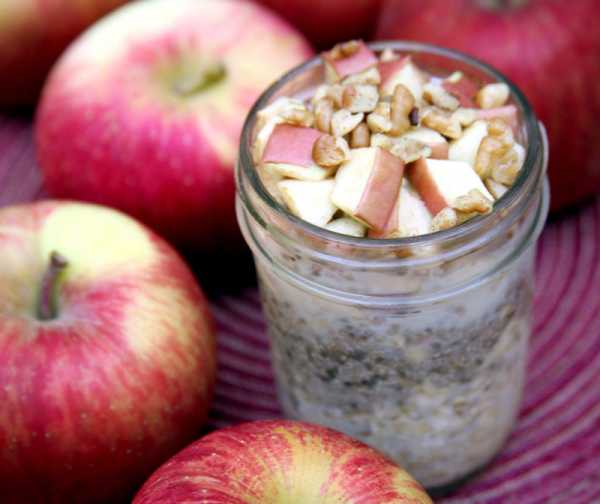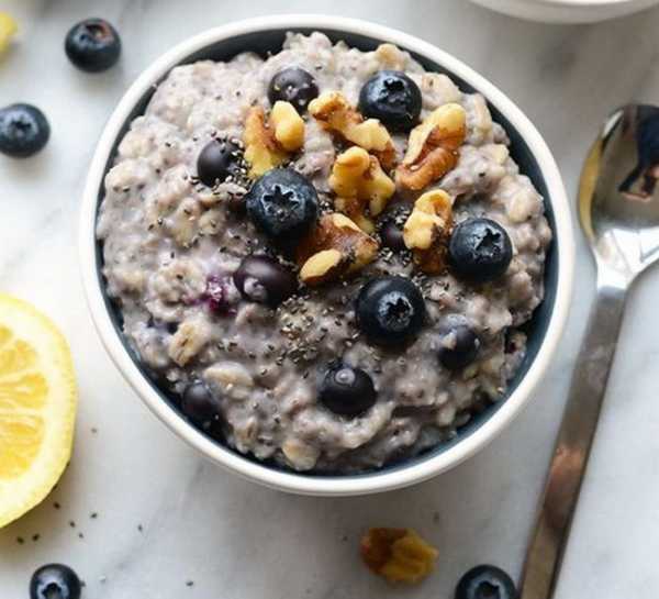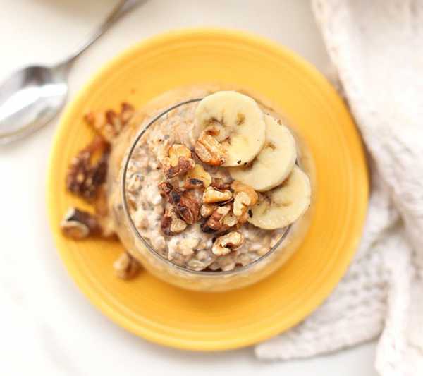 - Поставьте кашу на ночь в холодильник. Утром украсьте овсянку грецкими орехами. Подавайте холодной или разогрейте в микроволновой печи в течение 30—60 секунд.