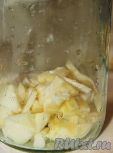 Яблоко и банан нарезать средними кусочками и высыпать в банку.
