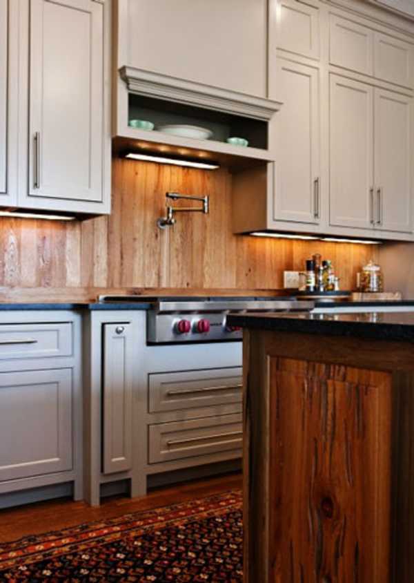 Фото: Кухонный фартук из дерева не очень практичен