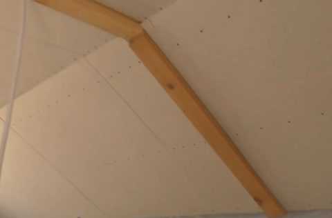 | После того, как каркас готов, приступают к его заполнению. Для этой цели можно использовать минвату, пенопласт, акустические плиты. Пароизоляцию монтируют только на минвату, так как она имеет свойство увлажняться и от этого загнивать. |