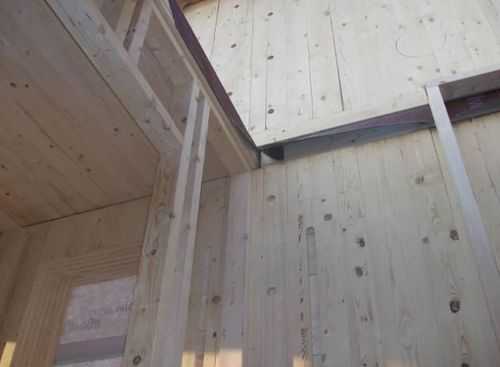 | Когда все поверхности обвязаны, с шагом, необходимым для монтажа вагонки (1-1,2 м), выставляются стойки. К обвязочным брускам их крепят посредством стальных уголков. |