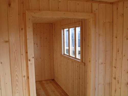 - Перегородка обшивается вагонкой с одной стороны. Монтаж начинается от окна и предполагает стыковку ламелей и фиксацию гвоздями или саморезами.