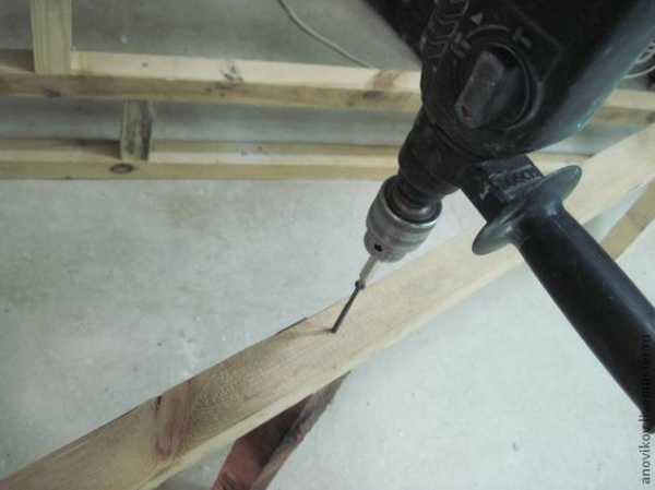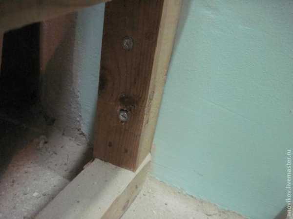 - При фиксации реек к стене рекомендуется использовать такой прием: сначала прикрепить небольшой фрагмент бруса к стене, а уже на него сверху монтировать горизонтальную перекладину.