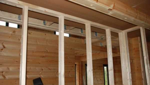 Каркасные перегородки в деревянном доме своими руками делают из опорного бруса или толстой (50-40 мм) доски. Сооружают конструкцию следующим образом: