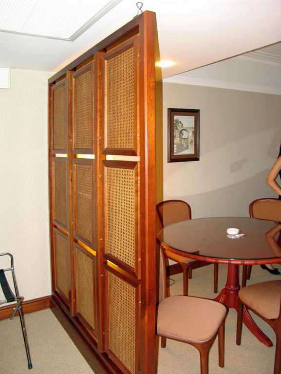Хотя сделав деревянное сооружение, можно значительно сэкономить пространство, используя перегородку как предмет интерьера особенно с применением раздвижной системы.